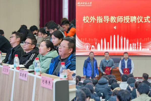接下来,教务处副处长刘文华上台为校外指导教师代表颁发聘书,对他们长期以来为学院实习工作提供的悉心指导与大力支持表示衷心感谢。两位校外实习指导教师回顾与实习生共同成长的宝贵时光,高度认可湖北师范大学体育学院实习生的综合素质与专业能力,结合具体教学案例点评了学生在课堂设计、技能传授、学生管理等方面的亮点与进步,并从一线教学需求出发,为在场学生提出了“深耕专业技能、注重教学细节、永葆教育初心”的成长建议。